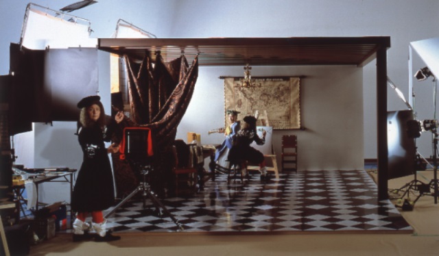 森村泰昌《フェルメール研究(3人の位置)》2005年、カラー写真、44.5×76.0cm、国立国際美術館 ©Morimura Yasumasa