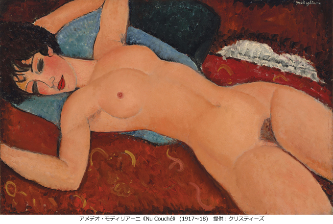 クリスティーズ・ニューヨークで11月9日夜、特別オークション「アーティストのミューズたち」が開催され、モディリアー二の「横たわる裸婦(Nu Couché)」が1億7,000万ドル(約210億円)で落札、作家のレコードプライスとなった。35カ国からの参加があったこのオークションは、総額4億9千万ドル(約600億円)に達し、モディリアー二を始め、クールベ、バルテュス、リキテンスタイン、そして奈良美智の5名のアーティストの史上最高落札価格の記録が更新された。