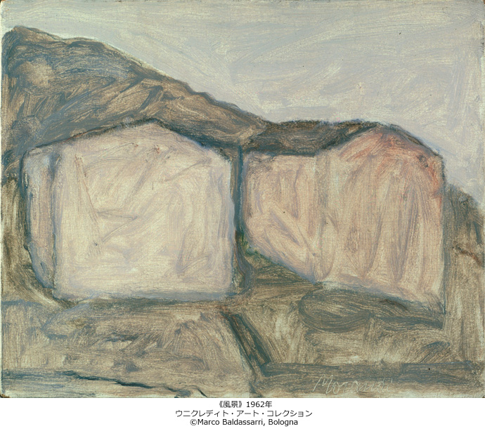 たらちねの、母。瀟洒な、マンション。静謐な、モランディ。というような符牒でもあるのかと思うほど、モランディについての短い紹介文などに静謐、静寂といった言い回しを見かける。常套句である。まさか「静物画」だから静かだというわけではあるまいが、そう書けば上品な香りが漂うとは限らず、むしろモランディに関しては徒らに印象を損ねることにならないだろうか。