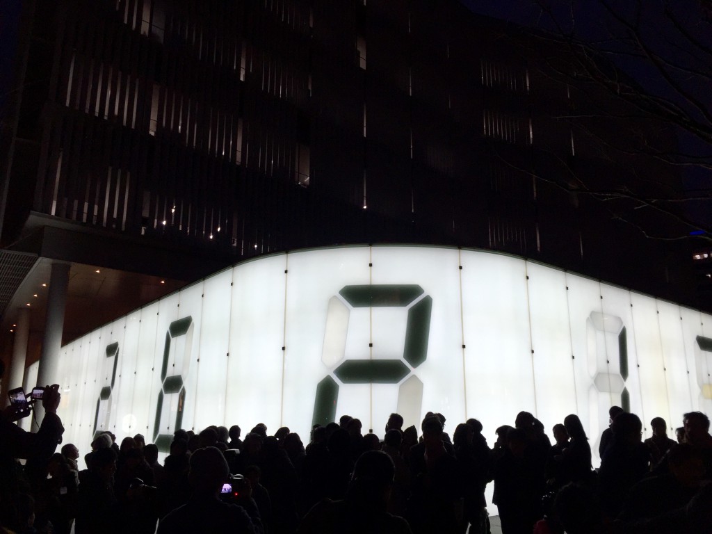 六本木ヒルズけやき坂にそびえる宮島達男の巨大なパブリックアート《Counter Void》。3.2mの6つの数字が9から1をカウントダウンする同作は、東日本大震災のあった2日後、2011年3月13日にアーティスト自身の判断によって消灯された。その作品が2016年3月11日、震災から5年を契機に3日間のみの再点灯を迎えた。(取材・文/橋爪勇介)