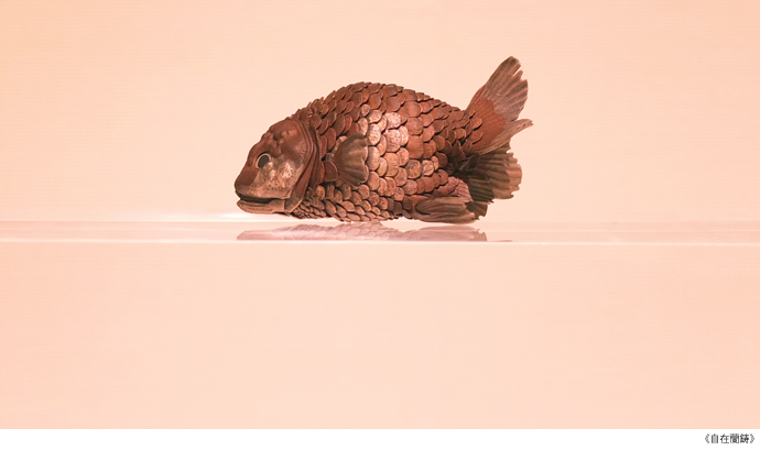 その他にも存在感のあるオオヤドカリや丸いフォルム可愛らしくもあるランチュウ、数百パーツからなるオオムカデなど、およそ15点のいずれにも対象への鋭い観察眼と精妙極める技が発揮され、飽きずに見入ってしまう。今日においてはなかなか見られる機会の少ない超絶技巧「自在置物」をぜひ目の当たりにしてほしい。