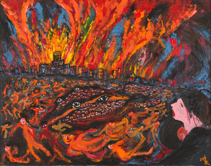 審査員賞 佐々木豊賞 堀内一光《広島原爆71周忌「子供たちのメ・め・目が」》アクリル画 (86歳)