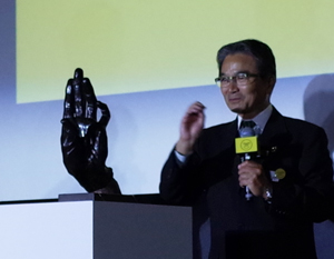 高村光太郎《手》の裏側をながめる宮田亮平・文化庁長官