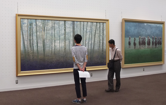 会場風景 左:日本美術院賞(大観賞)受賞の髙島圭史 右:奨励賞受賞の松岡歩