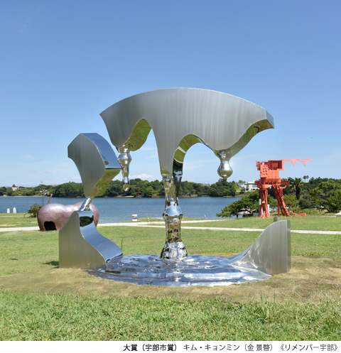 韓国・釜山市出身のキム氏は2002年に来日、以来一貫してステンレスで制作している。受賞作のコンセプトは水の音と空間。選考委員会では「宇部のエネルギーを見事に造形化した」(水沢勉・神奈川県立近代美術館館長)と評価された。選考委員は酒井忠康(委員長、美術評論家・世田谷美術館館長)、澄川喜一(彫刻家・島根県立石見美術館館長)、水沢 勉(美術評論家・神奈川県立近代美術館館長)、河口龍夫(現代美術家・金沢美術工芸大学教授)、斎藤郁夫(山口県立美術館副館長)、藤原徹平(建築家・横浜国立大学大学院Y-GSA准教授)、日沼禎子(女子美術大学准教授)、不動美里(姫路市立美術館副館長)、岸 桂子(毎日新聞社大阪本社学芸部副部長)、久保田后子(緑と花と彫刻の博物館館長)。
