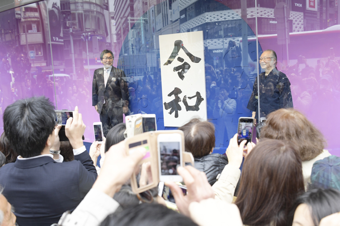書「令和」の展示は、4月3日(水)までの3日間を予定。読みやすく魅力的な書を通し、銀座の街行く人々が新元号に親しむ機会となっている。