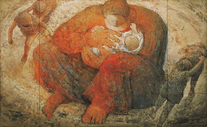 第一章は「愛される存在」をテーマに、日本美術院院友の新生加奈と、一陽会委員の大久保綾子を紹介する。新生は、美しく繊細な色彩を用いて、優しさに満ちたタッチで人物を描き出す。描かれる少女や母子像には、慈愛に満ちた空気や、深い暖かさが感じられる。大久保は一貫して母子像を描いており、子どもとともにどっしりとした存在感のある母親を描き、まるで大地にしっかりと根を張る大樹の風景のような作品を発表している。作品を通じて、子どもに注がれるあたたかなまなざしが感じられるだろう。