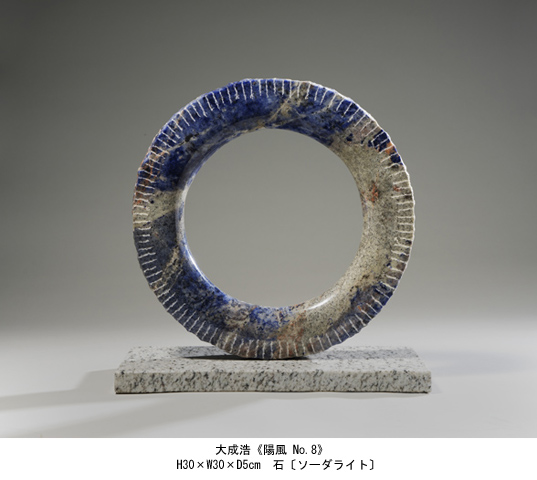 今展は彫刻家・大成浩(1939年富山県生まれ、国画会会員)を中心とする「アトリエ風」のメンバーと有志による展覧会。石による新たな造形表現・空間表現に挑むべく、石彫作家の共同アトリエとして相模湖近くに誕生した「アトリエ風」――その場所で切磋琢磨する仲間たちとの共通の目標としてスタートした今展は、30余年の歳月を経た今も変わらず、弛まぬ研鑽の成果を示す場として在り続けている。
