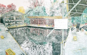 「ノスタルジア―記憶のなかの景色」展では、この複合的感情を強く感じさせる個性的な8名の作家たちを紹介する。第1章「街と風景」では、将来変わってしまうかもしれない現在の風景を忠実に描写しようとしている阿部達也と南澤愛美。彼らは、季節や時間によって刻々と変化する陽光、空気、そして川面の波紋を、いとおしむように描き出している。