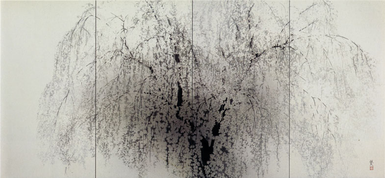 「爛漫」 2003年 171.4×364.0cm 紙本墨画、四曲一隻屏風 今治市大三島美術館蔵