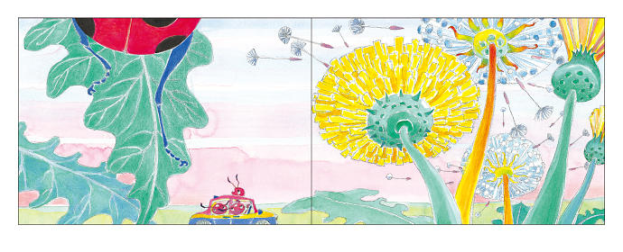 子どものアリのアンリーが、おとうさんおかあさんと、はるののはらへドライブにでかけます。