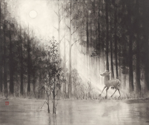 「閑寂の中に」のシリーズではいつも親子の動物を描くのですが、