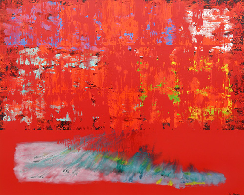 錯綜した生活空間(自分の生活空間)を位相(空間)という。 絵を描く、旅をする、山にも登る、その他諸々のことを行う生活が私の生活空間である。だから、私の絵は「位相」シリーズである。ここ十数年「位相」シリーズの制作を続けている。作品のタイトルも位相0000(制作年代・作品番号)とだけにしている。 この作品は位相0000の後に私の思いをつけている。東日本大震災の一日も早い復興を願い、私なりの応援歌を歌おうという思いである。その思いを少し画面に表現した。 具体的にどこがどうということはできないが、赤い色や空色、黒という色彩からくる感じにその思いを込めている。赤い色にその熱い思い(情熱)を感じてもらえれば幸せである。