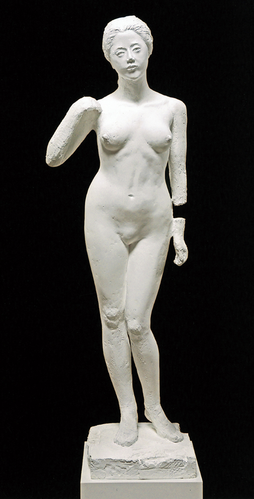 ゼフィロス…、地中海の春を告げる風です。今回は七分身としました。70%の大きさです。体の表面を、いわゆる完成した部分と大きな面でとらえた荒いマチエールの部分で、初春から花が咲き誇る春のさかりまでの時の流れを表現しようと試みました。