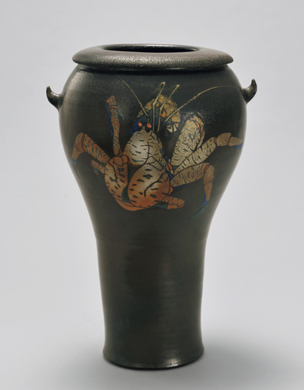 その生きざまをモチーフとし、面象嵌による技法で薪窯の窯変効果を出し、一体感を表現した作品である。