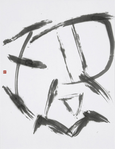 文字は汗簡の古文を選び、輪を連想する形態をとり、躍動する感じをこめた。