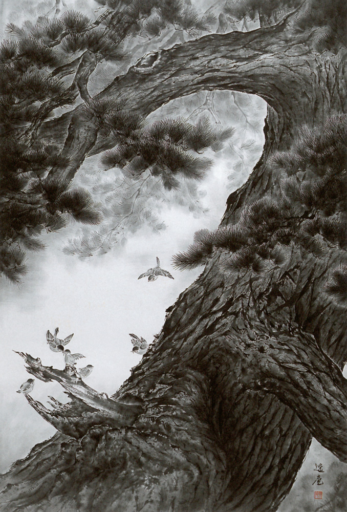 桑原逸庵 「岳高く川長し」「黄嘴歓鳴」