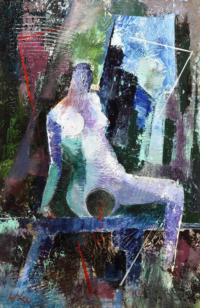 衣装を脱ぎ、休日を送る「マネキン」を、リアル表現ではなく、感性でとらえて抽象表現をしてみた。繊細な直線や、曲線の交差している幻想的なマネキンが浮上してくる。
