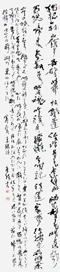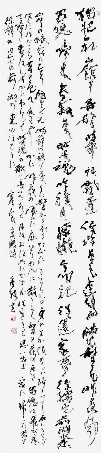 第29回産経国際書展(東京都美術館) 「寒食〈獨把一杯山館中…〉」(来鵬) 240×60cm 2012年