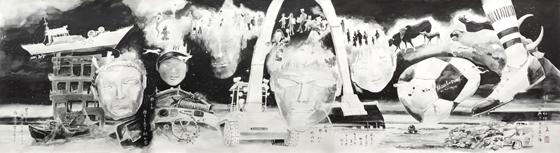 第21回創造水墨画展(北千住・ギャラリー1010)「帰(げ)るに如何(か)」135.0×505.0cm