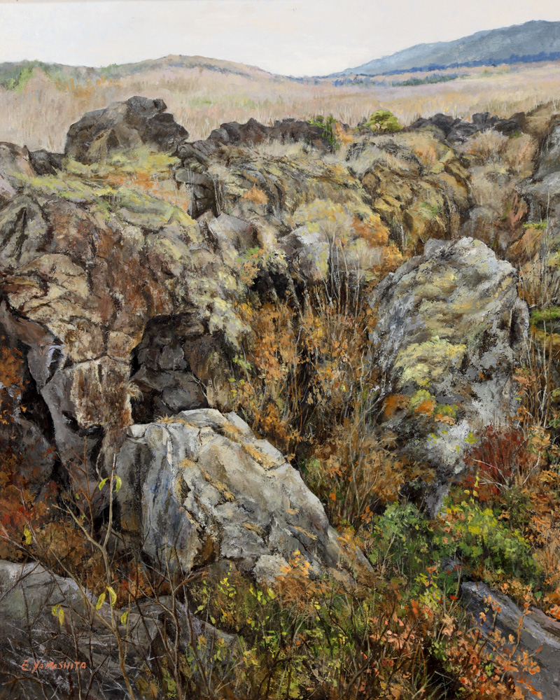 数年前より渓谷の神秘的な空気と大きな岩肌の魅力に引かれ描いております。
