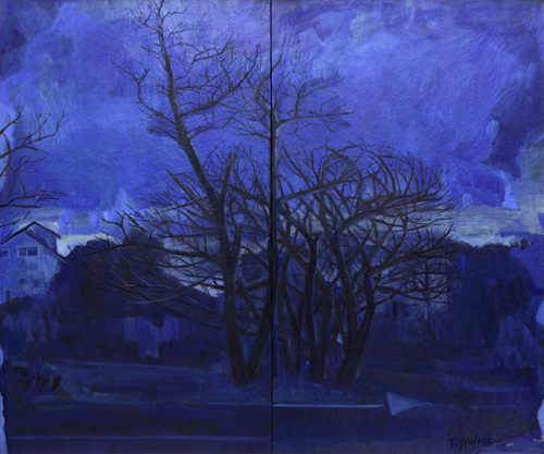 木々は実在するものの素描と、E・シーレの木からの援用です。