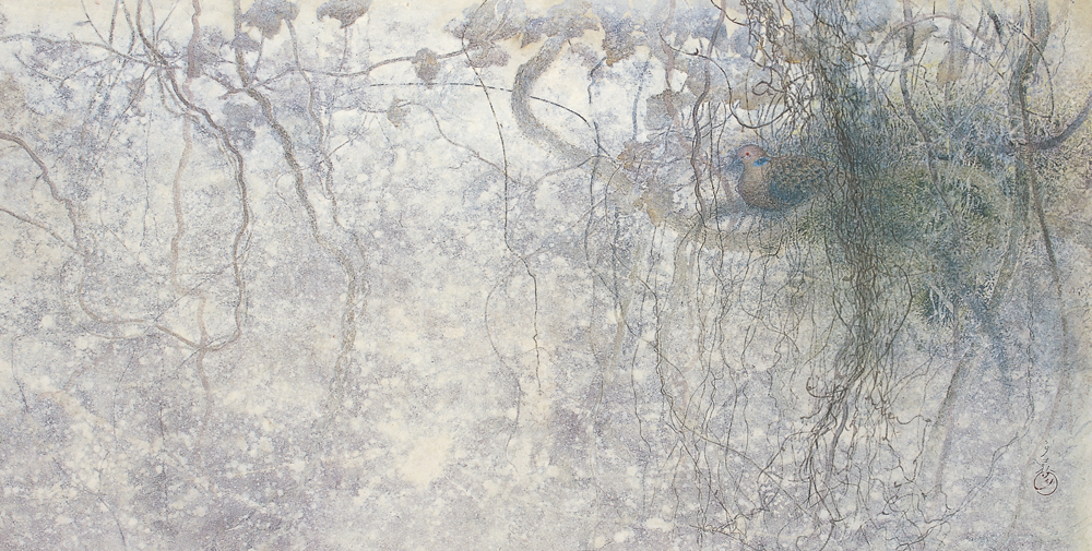 「山鳩よ 木や草や風の聲を聴いているのか」83.0×163.0cm