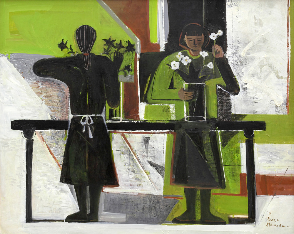 島田章三 「階段のコンポジション」「ふたりで花をいける」